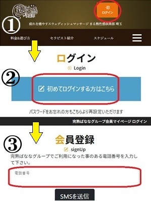 ①画面の右上にあるログインボタンをクリック